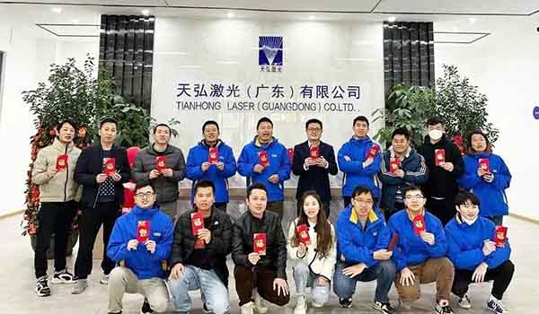 天弘激光董事长金总携公司高管为大家发放新年利是,以此感谢天弘全体员工2022年辛勤的付出,同时激励大家在新的一年,继续以饱满的状态投入到工作中,不畏艰难、奋力拼搏,势不可挡!